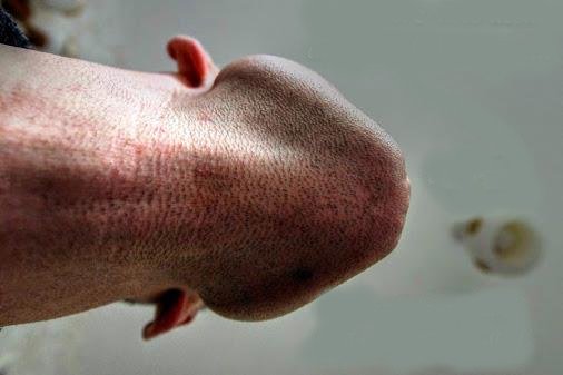 Descubren que un hombre visto desde debajo de la barbilla parece un pene con branquias